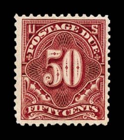 1370 nh J44 image#J44, 50c Deep claret, wonderfully bright and fresh, intense color and a deeply etched impression, rather well centered, o.g., n.h., very fine; a seldom seen never hinged example of this high value postage due; 1997 PF certificate. (Image) $900.00