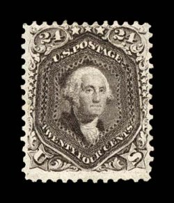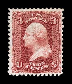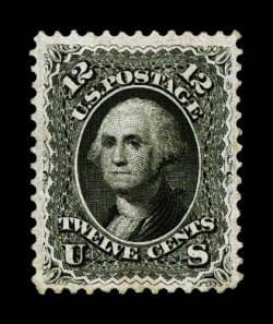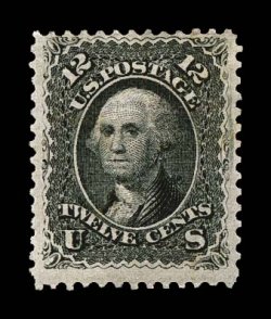 1044 og 69 image#69, 12c Black, a wonderfully choice and handsome mint example of a stamp that is almost never encountered in premium condition, featuring strong color and a remarkably detailed impression, wonderfully well centered within uncharacteristically large margins, full o.g., relatively lightly hinged, extremely fine for this; sound original gum examples of this value, as well as others from the 1861-66 series, are among the most elusive of all 19th century stamps to find, particularly so with such exceptional centering and margins; 1985 PF certificate. (Image) $1,800.00