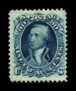 1047 og 72 image#72, 90c Blue, a brilliantly fresh and choice example of this rare mint high value, sumptuously rich color and impression, well centered within large margins, immaculate full o.g. that shows just the barest trace of hinging, a very fine and desirable example of a stamp that is on virtually every serious collector's want list of mint stamps; 2004 PF certificate. (Image) $3,250.00