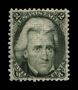 1049 og 73 image#73, 2c Black, a highly select mint example of this perennially difficult stamp, featuring outstanding centering amid margins that are lavishly large compared to most others, strong color and a crisp impression contribute further to this stamp's overall appeal, full clean o.g., lightly hinged, extremely fine gem; 1998 PF certificate. (Image) $375.00
