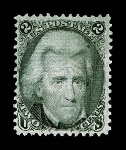 1061 og 93 image#93, 2c Black, "F" grill, exceptionally well centered for this typically poorly centered value, wonderfully fresh and bright, strong color, full clean o.g. that has been only barely hinged, very fine; a choice mint example; 1997 PF certificate. (Image) $500.00