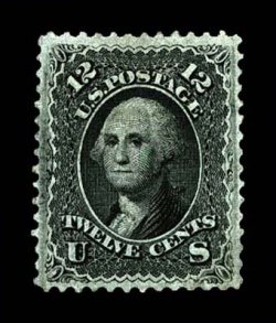 1063 og 97 image#97, 12c Black, "F" grill, an exciting mint example of this value from the "F" grill series, being one of the most challenging values to find in such outstanding quality, possessing exceptional centering within uncharacteristically large margins, plus it is marvelously fresh overall, with deep luxuriant color and an uncommonly clean impression for this, full o.g. that has been relatively lightly hinged, extremely fine; without question one of the finest original gum Twelve Cent "F" Grills we have ever offered; 1985 PF certificate; ex-Lessin. (Image) $3,500.00