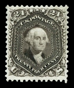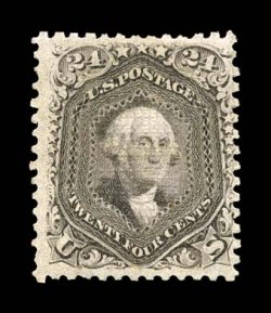 1064 og 99 image#99, 24c Gray lilac, "F" grill, a very scarce mint single in much better quality than usually seen, being exceedingly fresh with intense rich color that is stronger than most, plus a highly detailed impression, while centered a bit to right this is actually quite well centered for the issue and surrounded by unusually crisp and even perforations, displaying full immaculate o.g. which has been only lightly hinged, nearly very fine; a choice example of this elusive mint Twenty Four Cent "F" grill; 2000 PF certificate. (Image) $6,250.00