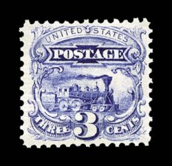 1079 nh 114 image#114, 3c Ultramarine, a pristine mint single that possesses strong rich color and a crisp detailed impression, exceptionally well centered within large margins, full unblemished o.g., never hinged, extremely fine; photocopy of a 2000 PF certificate for a block of six, this being the top left stamp. (Image) for hinged $350.00