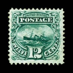 1080 og 117 image#117, 12c Green, quite well centered within uncharacteristically large margins, deep rich color and a sharp impression, part o.g., very fine; 1998 PSE certificate. (Image) $2,600.00