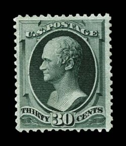1121 og 165 image#165, 30c Gray black, an exceptionally choice and handsome mint example of a Bank Note which is often missing in even the most advanced collections, possessing an uncommon overall brilliance, with rich characteristic gray black color and a sharp detailed impression, quite well centered and margined, especially clean full o.g., lightly hinged, very fine; a particularly desirable example of a terribly elusive mint stamp; 1996 PF certificate. (Image) $3,250.00