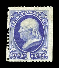 1123 og 167 image#167, 1c Ultramarine special printing, without gum as issued, an unusually fresh and choice example of this difficult special printing rarity, possessing bright rich characteristic color and a sharp prooflike impression on crisp paper, especially well centered, scissor separated as almost always but perforations much more intact than found on most copies, very fine; an exceptional example of a stamp that is thought to still exist in a quantity of no more than 35 to 40; 2000 APS certificate. (Image) $12,500.00