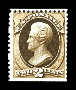 1124 og 168 image#168, 2c Dark brown special printing, without gum as issued, an exceptional example of this rare and difficult Special Printing, scissor separated as usual, but with perforations very nearly intact all around, especially deep color and impression on bright paper, very fine; it is believed that only about 75 examples still exist of this value, of this population probably half have straight edges on at least one side and several more are faulty; 1976 APS certificate. (Image) $6,500.00