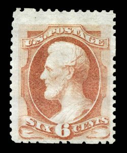 1125 og 170 image#170, 6c Dull rose special printing, without gum as issued, an especially choice example of this rarity, scissor separated as usual but being one of the very few in existence whose perforations are completely intact, incredibly fresh and crisp, with sumptuously rich color and a much more detailed impression than usual, quite well centered, very fine; among the finest copies available of the approximately 35 to 40 Six Cent Hard Paper Special Printings still thought to exist; signed E. Stern and accompanied by a 1986 PF certificate; ex-Isleham. (Image) $15,000.00