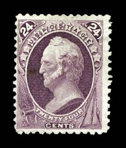 1128 og 175 image#175, 24c Dull purple special printing, without gum as issued, deep rich color and impression on bright paper, attractively centered, being among the few very of the approximately 100 copies thought to exist whose perforations are non-scissor separated and completely intact, tiny insignificant tone speck not mentioned on accompanying certificate, very fine for this rare stamp; signed E. Stern and accompanied by a 1971 PF certificate. (Image) $4,000.00