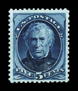 1135 og 185 image#185, 5c Blue, a gem mint example of this surprisingly difficult Bank Note, possessing outstanding centering amid uncharacteristically large margins, sumptuously rich color, uncommonly clean o.g. that has been very lightly hinged, extremely fine; an especially desirable and crisp mint stamp; 1999 PF certificate. (Image) $550.00