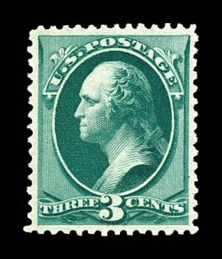 1134 nh 184 image#184, 3c Green, extraordinarily well centered within unusually wide margins, rich color, o.g., never hinged, small natural gum skip, extremely fine; 1981 PF certificate; ex-Zoellner. (Image) for hinged $120.00