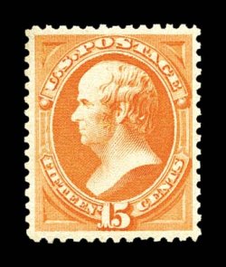 1139 nh 189 image#189, 15c Red orange, highly select mint example, exceptionally well centered and margined, lovely vibrant color in a deep shade, pristine o.g., never hinged, extremely fine; while #189's can be found in nice quality, few are as desirable as this never hinged example; 1999 PF certificate for a block of four, this being the bottom left stamp. (Image) for hinged $350.00