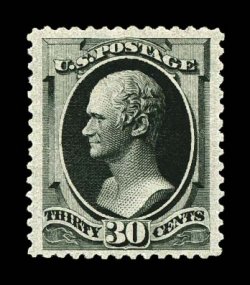 1140 og 190 image#190, 30c Full black, an impressively margined mint example, featuring extravagantly large margins all around and being wonderfully well centered within them, deep rich color on bright fresh paper, especially clean o.g. that has been only very lightly hinged, extremely fine; a striking stamp; 2000 PF certificate. (Image) $1,100.00