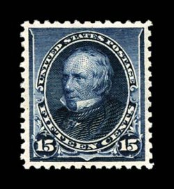 1169 nh 227 image#227, 15c Indigo, a marvelous mint single that is essentially perfectly centered within large margins, plus its color is especially intense and its impression razor sharp on fresh paper, immaculate o.g., n.h., extremely fine; easily among the finest never hinged examples we have ever offered of Scott #227; 2000 PF certificate for a pair, this being the top stamp. (Image) $750.00