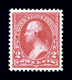 730 nh 250 image#250, 2c Carmine, Ty. I, striking mint single, featuring enormously large margins all around and being wonderfully well centered within them, full clean perforations, plus its color is especially vibrant while its impression is unusually crisp on clean white paper, o.g., n.h., extremely fine gem; 1993 PF certificate. (Image) $77.50