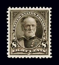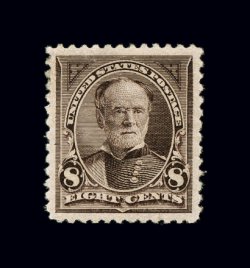 737 og 257 image#257, 8c Violet brown, remarkably large mint single, beautifully centered within boardwalk margins that are highly unusual for this value, luxuriously rich color, o.g., lightly hinged, extremely fine; rarely found in this jumbo gem condition; 2000 PF certificate. (Image) $160.00