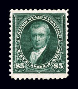 744 og 263 image#263, $5.00 Dark green, unusually well centered within particularly "tall" margins, deep rich color, o.g., tiny horizontal crease in the top margin at left, otherwise choice very fine; clear 1984 PF certificate. (Image) $5,000.00