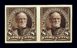 758 nh 272b image#272b, 8c Violet brown imperforate, horizontal pair, large even margins, strong rich color and a detailed impression, o.g., n.h. (typical natural gum bends), extremely fine. (Image) for hinged $450.00