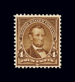 773 nh 280b image#280b, 4c Orange brown, marvelously well centered within unusually large margins, sumptuously rich color and impression on immaculate paper, plus crisp full even perforations, o.g., n.h., extremely fine; a pristine gem; 2002 PF certificate. (Image) $75.00