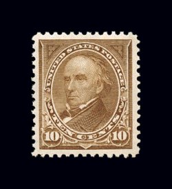 775 og 282C image#282C, 10c Brown, Ty. I, incredibly well centered amid extravagantly large margins which are most uncharacteristic of this stamp, deep luxuriant color and impression, o.g., lightly hinged only once, an extremely fine gem; far more difficult to find with margins of this size than most collectors realize; 2000 PF certificate. (Image) $200.00