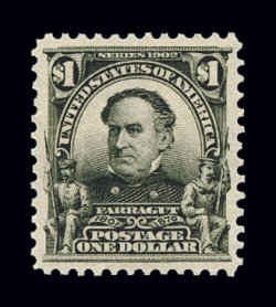 813 og 313 image#313, $5.00 Dark green, a most impressive mint example of this very scarce high value, possessing outstanding centering that is far superior to the vast majority, with large margins all around (a seldom seen occurrence on this stamp), sumptuously rich color and a crisp impression, o.g., lightly hinged, extremely fine; an especially desirable stamp in this gem quality; 2000 PF certificate. (Image) $2,900.00