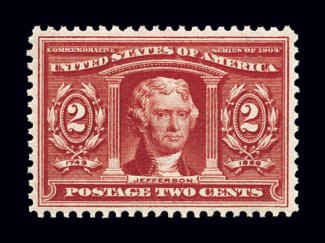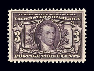 820 nh 325 image#325, 3c Louisiana Purchase, exceptionally well centered, deeply rich color and a strong impression, o.g., n.h., extremely fine; 2004 PF certificate. (Image) $200.00