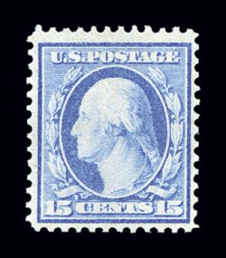 856 nh 366 image#366, 15c Pale ultramarine on bluish paper, wonderfully fresh color, pristine o.g., n.h., very fine; never hinged examples of this stamp are few and far between; 2004 PSE certificate. (Image) $3,100.00
