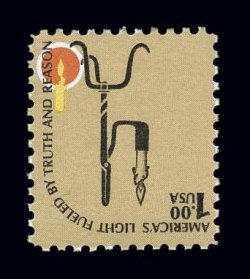 1035 nh 1610c image#1610c, $1.00 Rush Lamp and Candle Holder, intaglio brown inverted, well centered and fresh, pristine o.g., n.h., very fine; an especially attractive and choice example of the so-called "C.I.A." invert, so named as the sole pane of 100 was purchased at the McLean, Va. post office by employees of the C.I.A. for use on agency mail, noticing the error, the employees bought a replacement sheet and kept the error for themselves, when it was revealed who had purchased the stamps a scandal ensued over ownership; 95 out of the original 100 stamps can be accounted for, with the other five presumably having been used on mail and none of these have ever been found. (Image) $22,500.00