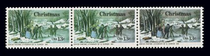 1028 nh 1471b image#1471b, 8c Christmas, black omitted, impressive transitional strip of three, the left stamp normal, the middle stamp with black partially omitted, and the right stamp with the black completely omitted, o.g., n.h., very fine and rare; only 10 examples exist; 1982 APS certificate. (Image) $3,500.00