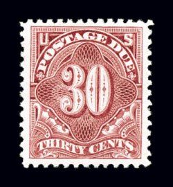 1137 og J36b image#J36b, 30c Pale rose, particularly well centered, with unusually large margins all around, bright color, slightly disturbed o.g., extremely fine; clear 1996 PSE certificate and a 2005 PSE certificate. (Image) $425.00