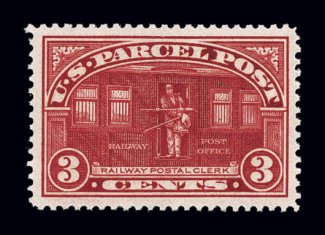 1196 nh Q3 image#Q3, 3c Parcel Post, gem mint example, featuring incredibly large and perfectly balanced margins all around, truly radiant color and a sharp impression on pristine paper, immaculate o.g., n.h., extremely fine; a stamp with great eye appeal. (Image) $37.50