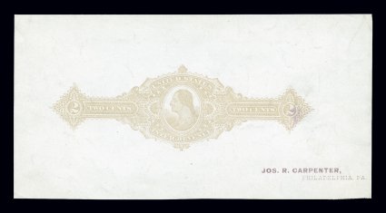 1343 E Turner Essay 233a imageTurner Essay 233a, 2c Gray, die essay on wove paper, medium size measuring 160x83mm, with violet "Jos. R. Carpenter/Philadelphia, PA." imprint at lower right, fresh and clean, very fine. (Image) Est. 150-200