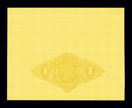 1347 P Turner Proof Ty. Xc imageTurner Proof Type Xc, 1c Orange, die proof on yellow surface colored paper, 117x84mm, particularly clean and fresh, extremely fine and unusually attractive; very scarce; the perfect mate to the previous lot. (Image) Est. 100-150
