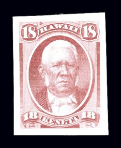1403 P 30P3/42P3 image#30P3/42P3, 1864-1883 1c-18c Bank Note issues, plate proofs on India, five different values including the 1c purple, 6c green and 18c Dull rose of the early issue, plus 12c Black and 1c Green later issues, all with four ample to extra-large margins, very fine-extremely fine. (Image) $990.00