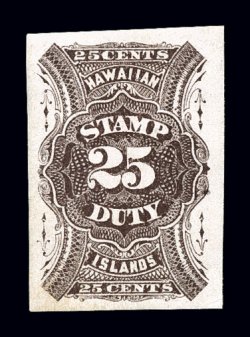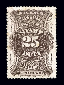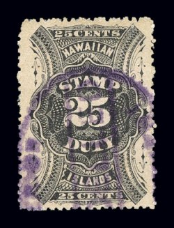 1441 og R10 image#R10, 25c Violet brown revenue, well centered, rich color, o.g., faint perf. tip toned specks, still very fine; ex-Honolulu Advertiser. (Image) $750.00