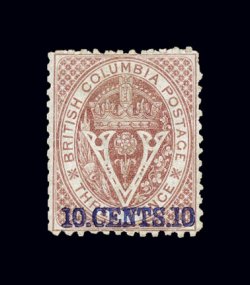 1460 og 15 image#15, 1869 "10.Cents.10" surcharge on 3p Lilac rose, perf. 12 1/2, an unusually well centered single of this difficult value, bright color and well struck surcharge, quite fresh with large part o.g. (not often found on these early issues), very fine and choice (Unitrade C$3,000.00). (Image) $750.00