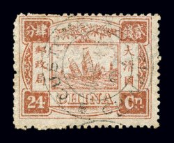 1567 O 8 var. image#8 var., 1883 3ca Pale red, thick paper with rough perforations, retouched bottom frame, cliche 17 (Chan T12), incredibly well centered used example, with neat portion of blue Peking seal cancel, bright color, extremely fine; this variety in cliche 17 apparently occurred in the late stages of thick paper printings, it is listed by Chan in clean cut perforations but not in the rough perforations (Chan #11a, var.) (Image) Est. 100-150