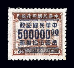 1685 og 937-47 image#937-47, 1949 $50.00-5,000,000.00 Gold Yuan surcharges on $10.00-20.00 Revenues, Hankow printing cplt. including the scarce high values, unused, without gum as issued, attractive fresh set, bright colors, overall quite well centered, fine-very fine (Chan #G117-27; 2,286.50). (imagea) (imageb) (Image) $1,851.25