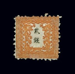 1711 og 3a image#3a, 1871 200m Vermilion and black, on wove paper, plate I, position 17, unused, without gum as issued, a marvelously choice example with four extra-large even margins, brilliant color and extra-clean impression, extremely fine in all respects; 1995 ISJP certificate (erroneously stating laid paper) (JSCA #3c; Y65,000). (Image) $375.00