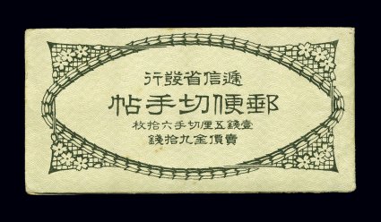 1761 BK JSCA #B2 var. imageJSCA #B2 var., 1907 Chrysanthemum complete booklet consisting of two 2s Yellow green, six 4s Rose red (JSCA #BP4; the scarcer of the two shades) and three 10s Prussian blue handmade booklet panes of six, wonderfully fresh, the stamps with fine-very fine centering or better, full even perforations on all the panes, pristine o.g., n.h., cover is clean and crisp, extremely fine and rare booklet; a premium booklet with the scarcer 4s shade. (Image) JSCA 350,000Y