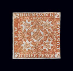 1875 og 1 image#1, 1851 3p Red, an exceptionally handsome mint single, possessing a freshness that is seldom found on stamps of this period, radiant red color, well clear to large margins all around, in addition it has virtually full original gum which is not frequently encountered on this issue, very fine; an exceedingly scarce mint stamp and rare in this choice condition; 1985 BPA certificate (Unitrade C$4,500.00). (Image) $1,900.00