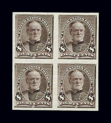648 ogbl 219c-29a image#219c-229a, 1c-90c Small Bank Notes, imperforate, a beautiful set of mint blocks of four, all with large margins all around and brilliant color, full o.g., lightly hinged (some stamps are never hinged), extremely fine; a rare set of blocks, and to try to assemble a finer set would be an immense challenge; 15c and 90c accompanied by 1993 PF certificates. (imagea) (imageb) (Image) $11,270.00+