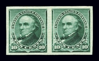 654 og 226a image#226a, 10c Green imperforate, horizontal pair, large margins all around, strong rich color, o.g., l.h., extremely fine. (Image) $325.00