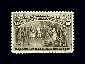 668 nh 237 image#237, 10c Columbian, an incredibly handsome and choice mint example, being extraordinarily well centered amid extravagantly large margins, plus it is exceptionally fresh, with wonderfully rich color and a razor-sharp impression on crisp white paper, pristine o.g., n.h., extremely fine; a true gem; 2005 PF certificate. (Image) $325.00