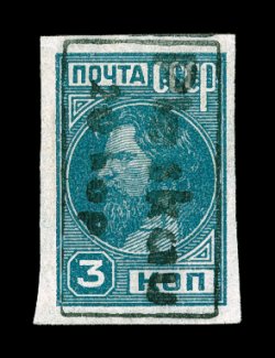 2198 og Mi. Bl. #1X imageMichel Block #1X, 1941 60k+40k Dark carmine brown imperforate souvenir sheet, lying watermark, unused without gum as issued, Cyrillic "Pskow/24 12 41" c.d.s. in top margin as a control, crisp and extremely fine. (Image) €1,000