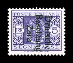 2207 og Mi. #P1-11 imageMichel #P1-11, 1943 "Deutsche/Besetzung/Zara" overprints on 5c-5L Postage Dues of Italy cplt., 20c Carmine and 50c Violet have type I overprints the rest have type II, furthermore the 2L Green has the scarce left-oriented watermark (Mi. #10YII), in all an attractive mint set with bright colors, o.g., hinged only once, fine-very fine; a very scarce set with the 25c, 60c, 1L, 2L and 5L each issued in a total of just 1,000 stamps, but the 2L left watermark in a type II overprint had a total printing of just 80 stamps; signed HSF 2717 and accompanied by 2000 Gerard Krischke BPP certificate. (imagea) (imageb) (imagec) (imaged) (Image) for n.h. €5,000