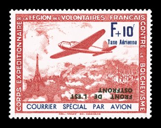 2170 nh Mi. #IVK, VK imageMichel #IVk, VK, 1941 "Front de L'est/Ostfront" overprint on F+10Fr Air vignettes, inverted overprints cplt., pristine mint set of this overprint error, especially fresh and well centered, immaculate o.g., n.h., extremely fine; double signed Pickenpack. (Image) €400
