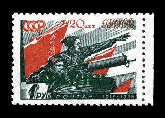 2172 nh Mi. #18 imageMichel #18, 1941 "Vilnus" overprint on 1R Red and black of Russia, the key high value of this series, right sheet-margin single, wonderfully well centered, strong colors including sharp green overprint, o.g., n.h., extremely fine; 1998 Gerhard Krischke BPP certificate. (Image) €1,000