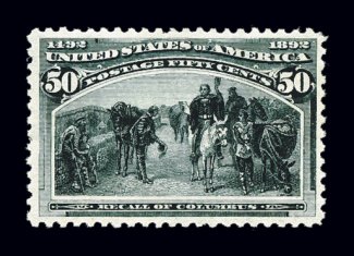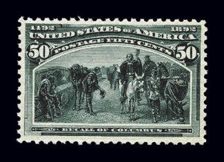 309 og 240 image#240, 50c Columbian, deep luxuriant color and impression, well centered and margined, especially clean o.g., very lightly hinged, very fine and quite choice; 1992 PF certificate. (Image) $600.00